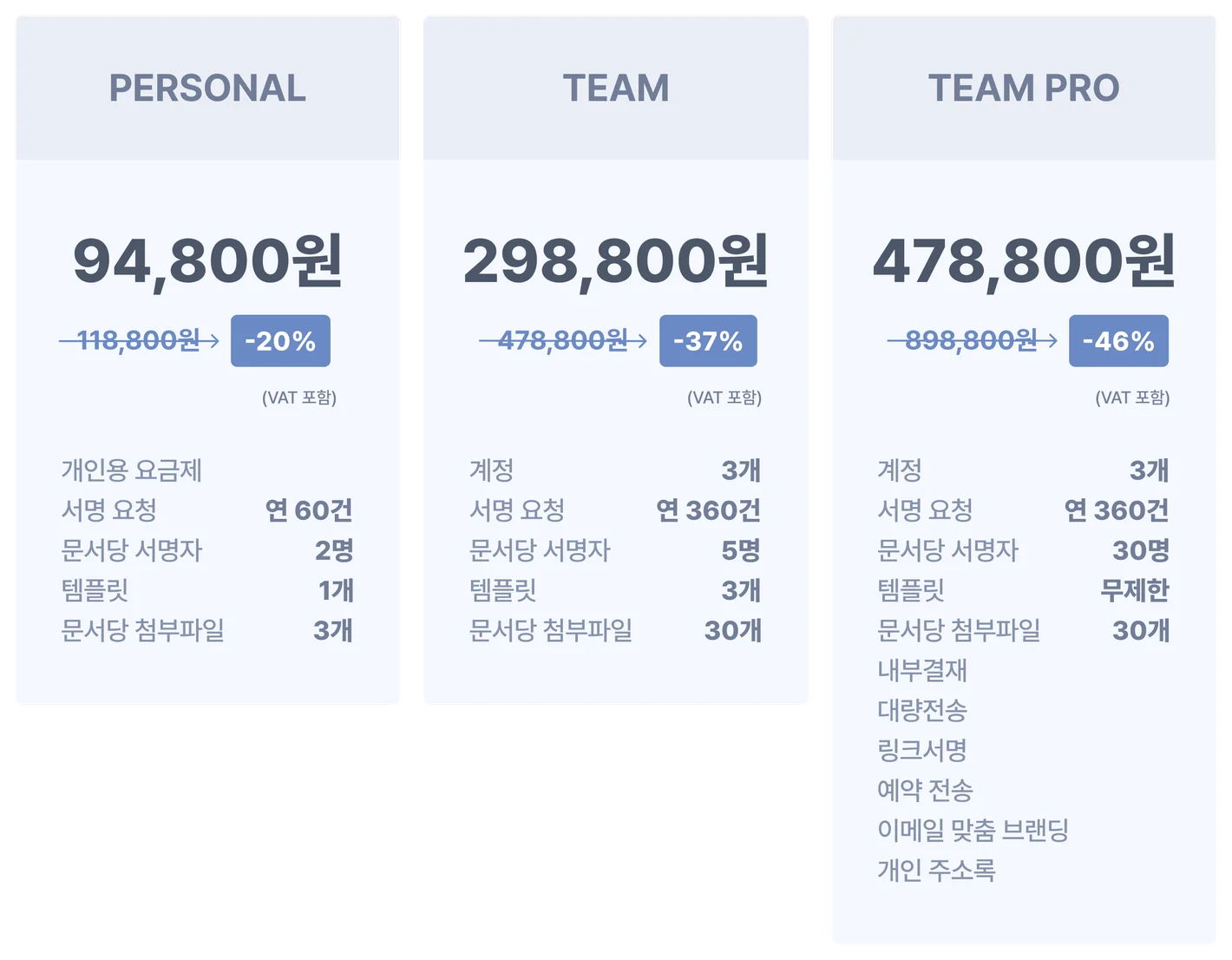 • 모두싸인 요금제 3종 할인 제공 (PERSONAL / TEAM / TEAM PRO)