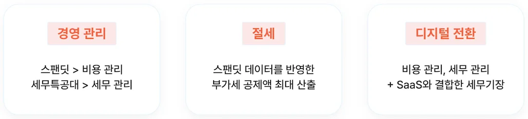 스팬딧과 세무특공대는 기업의 비용 및 세무 관리를 효율화하는데 매우 효과적입니다.