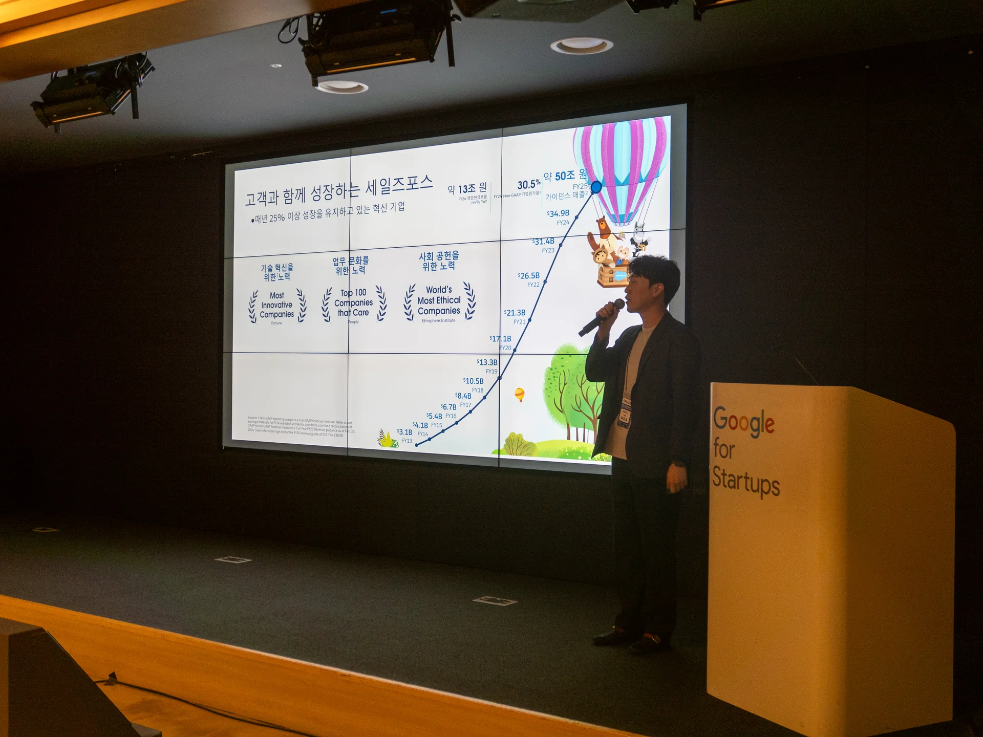 마지막 세션은 세일즈포스 배정열 본부장님께서 준비해주셨습니다. 많은 B2B 기업의 영업 가장 큰 고민은 역시 영업입니다. 세일즈포스는 CRM, 슬랙 등 다양한 솔루션을 기반으로 현재 세계에서 가장 성공한 B2B 기업입니다. 이번 세션에서는 세일즈포스의 영업 전략과 스킬을 공유했는데요. 특히 체계으로 영업 단계를 구분하고 확장시키는 영업 방법론이 많은 호평을 받았습니다.